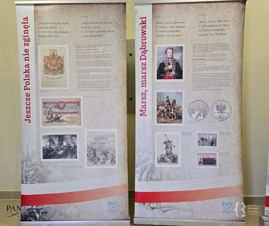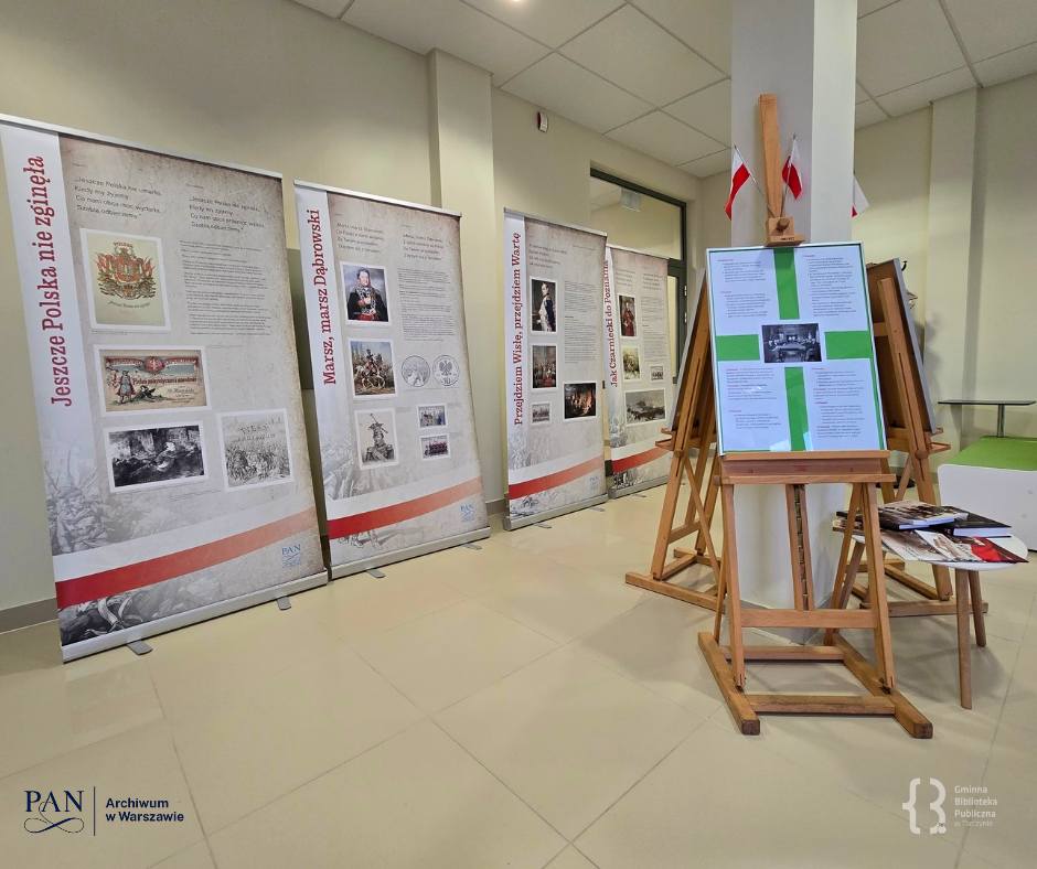 Z radością informujemy, że wystawa „Losy Mazurka Dąbrowskiego” gości w Bibliotece w Tarczynie. To dla nas ogromna satysfakcja, że nasze projekty cieszą się tak dużym uznaniem i zainteresowaniem – są chętnie wypożyczane i prezentowane w różnych miejscach.